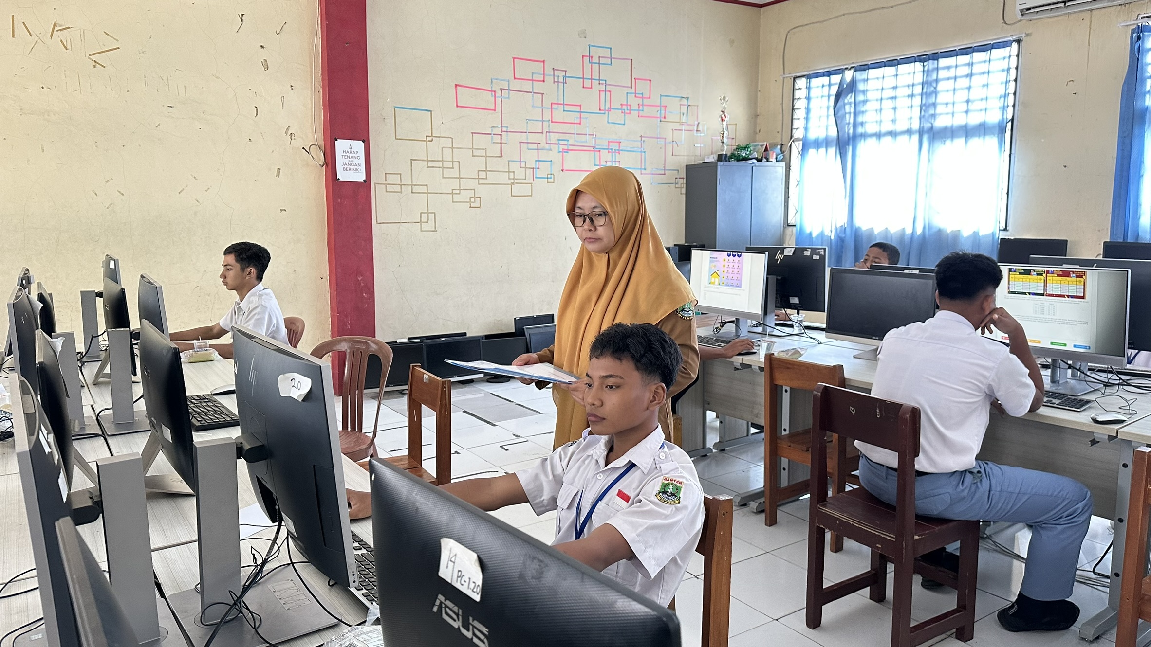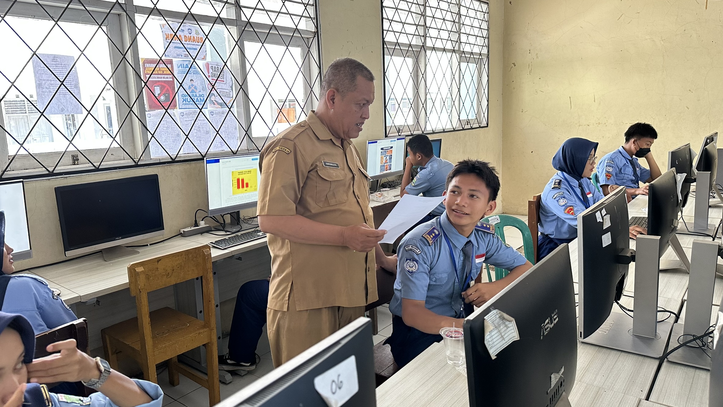 Suasana laboratorium selama pelaksanaan ANBK berlangsung tertib dan kondusif. Para peserta mengikuti asesmen dengan serius, sementara tim teknis selalu siaga memastikan perangkat dan jaringan berjalan tanpa kendala.