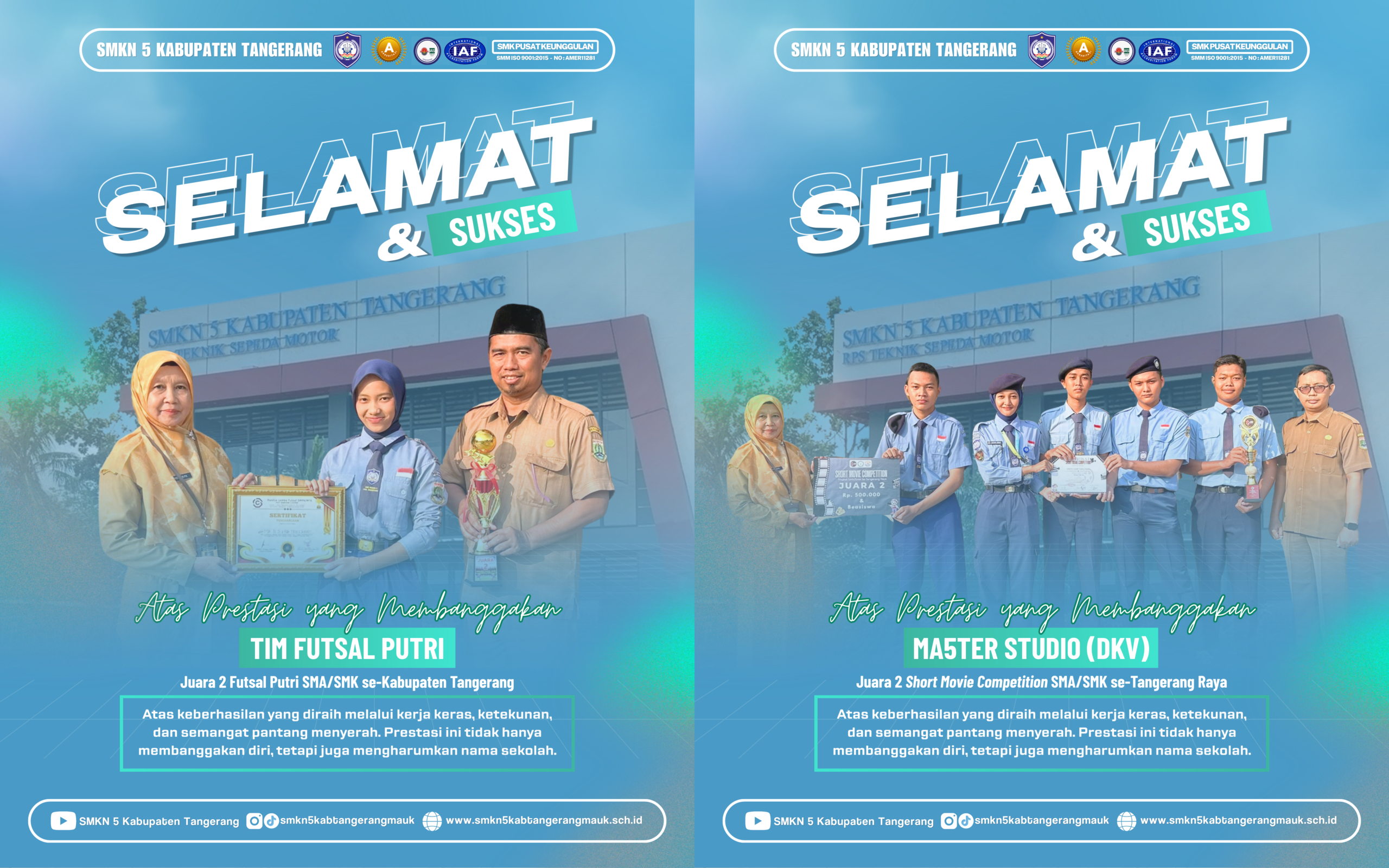 “Prestasi ini menjadi bukti bahwa siswa SMKN 5 Kabupaten Tangerang mampu bersaing dan berprestasi, baik di bidang olahraga maupun seni. Semoga pencapaian ini menjadi motivasi bagi seluruh siswa untuk terus berkarya dan berprestasi,” ujarnya.