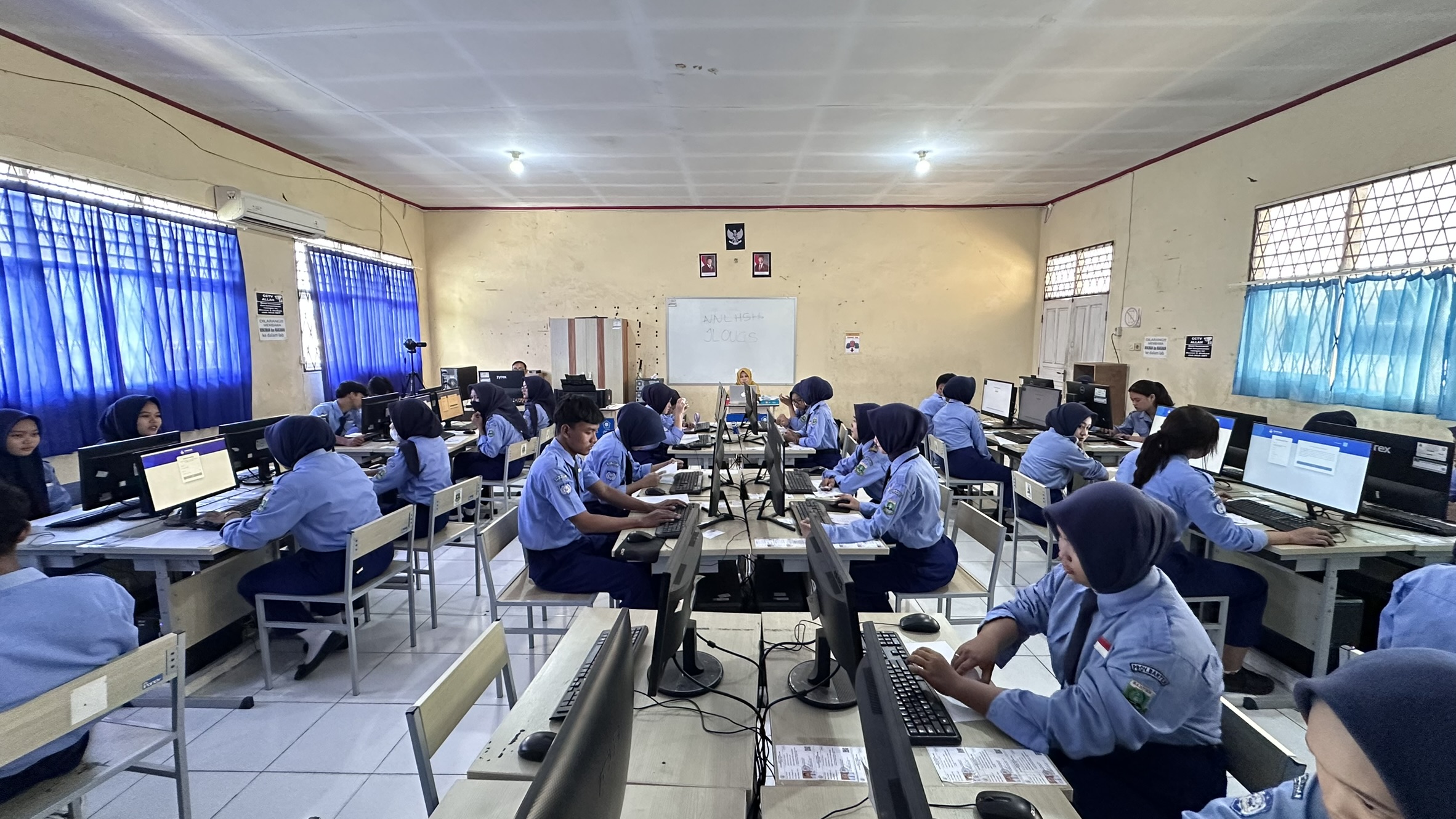 Pelaksanaan gladi bersih dilakukan dengan tiga sesi setiap harinya, menyesuaikan jumlah peserta dan ketersediaan perangkat komputer di laboratorium. Setiap sesi berjalan dengan tertib dan diawasi langsung oleh panitia serta guru pengawas, guna memastikan kesiapan sistem ujian berbasis komputer (CBT) berjalan optimal.