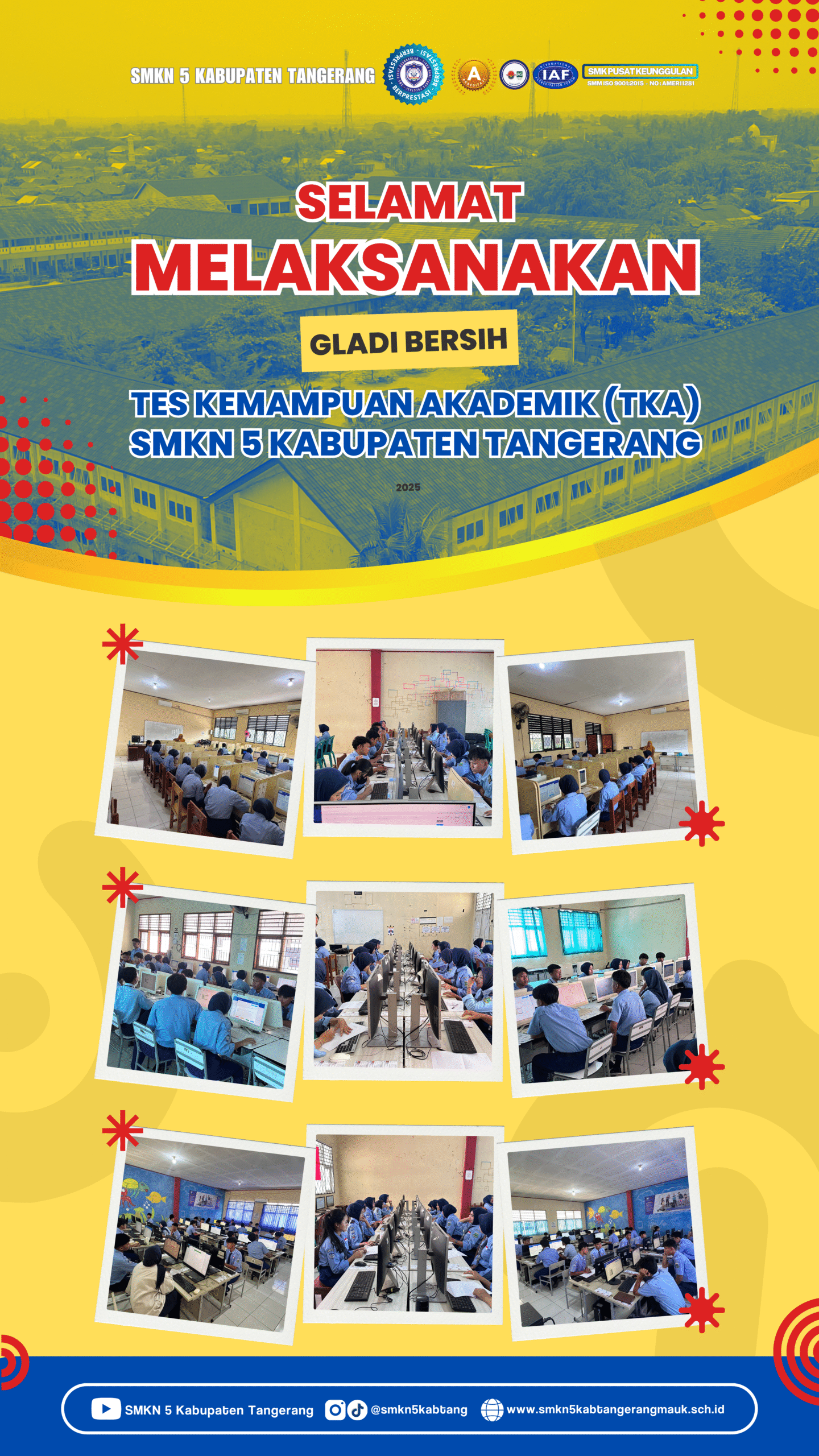 Mauk, Kabupaten Tangerang – Senin , 27 Oktober 2025. SMKN 5 Kabupaten Tangerang melaksanakan Gladi Bersih Tes Kemampuan Akademik (TKA) selama empat hari, mulai Senin hingga Kamis (27–30 Oktober 2025). Kegiatan ini menjadi tahap akhir persiapan sebelum pelaksanaan resmi Tes Kemampuan Akademik yang akan dimulai pada Senin mendatang (3 November 2025).